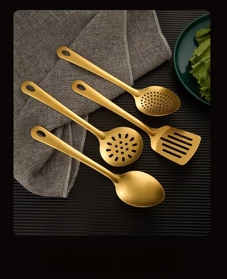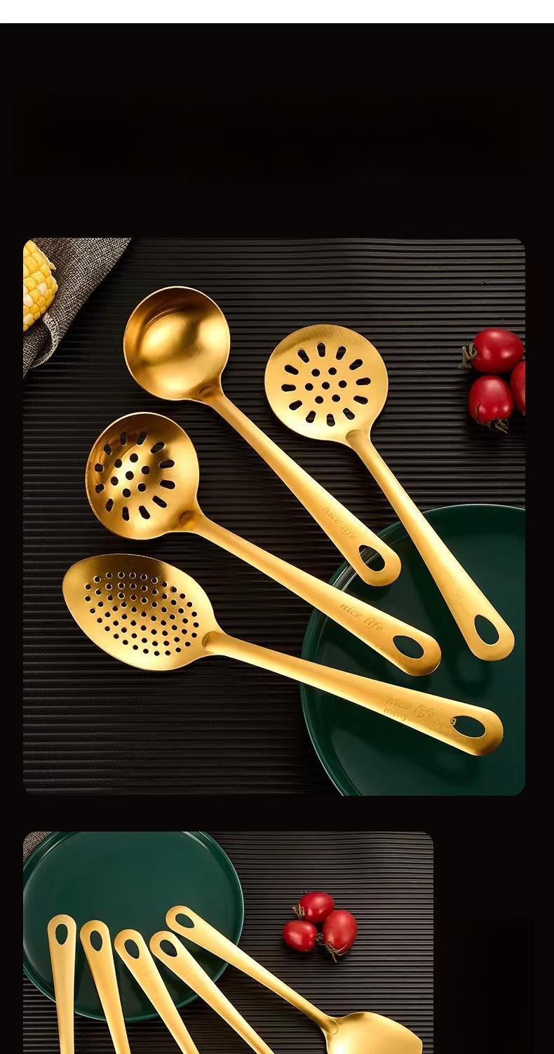 Cuillère de service à soupe dorée avec manche rond